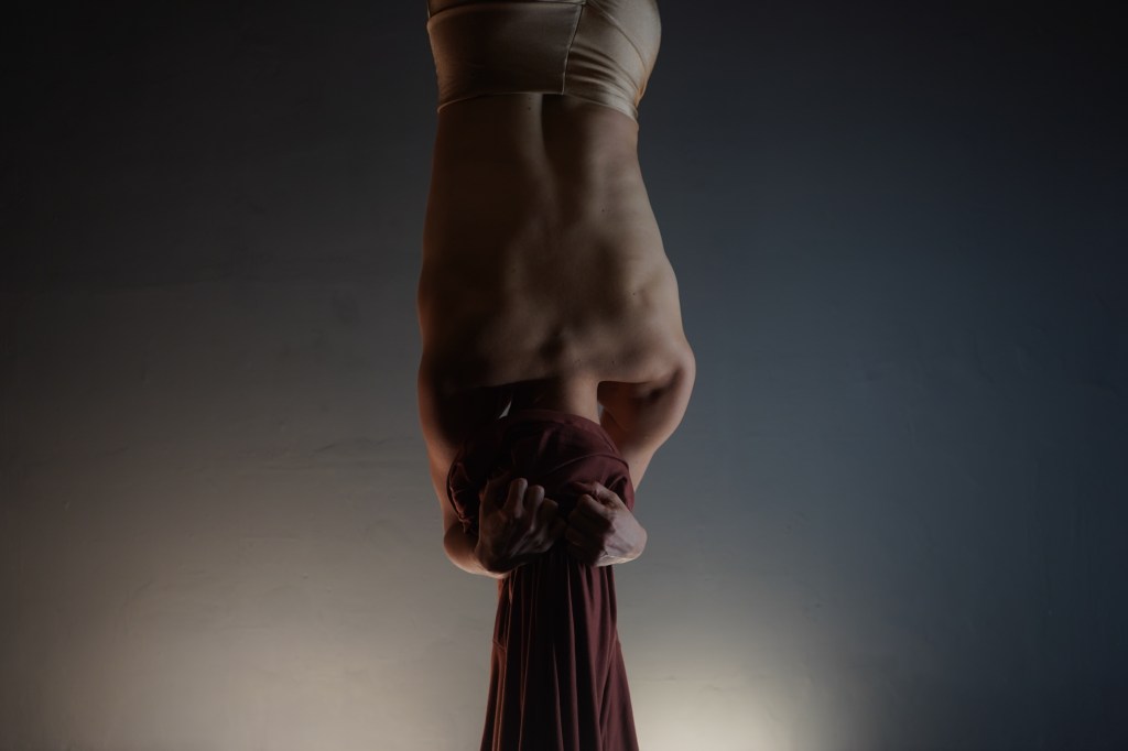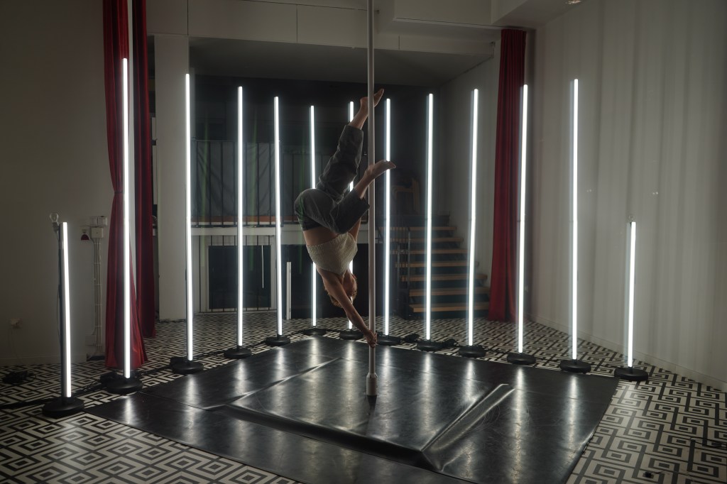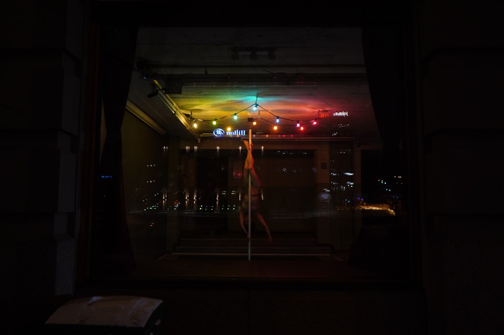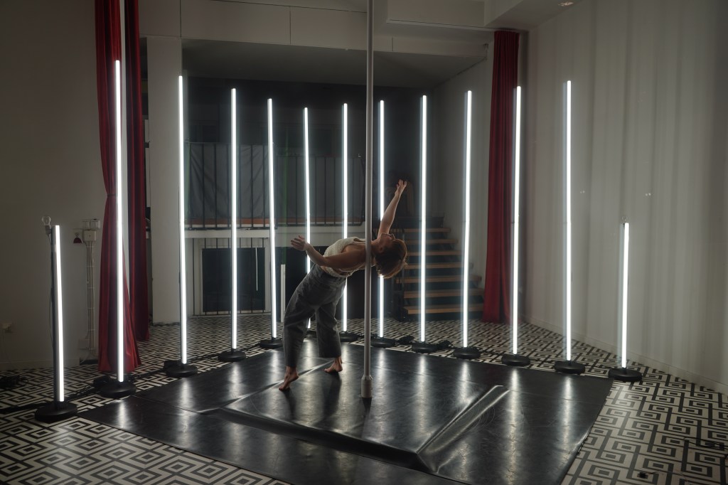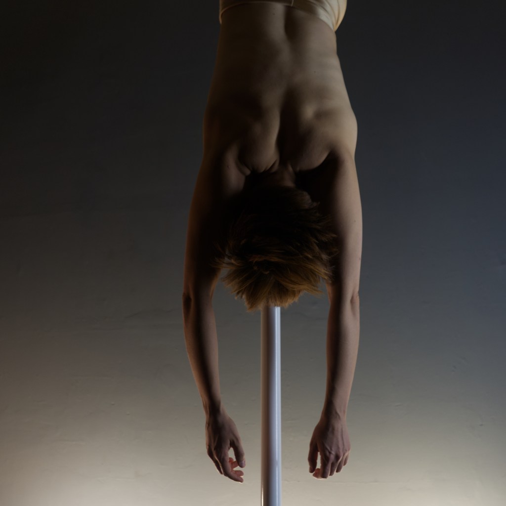 Hfobia is a pole dance performance presented in a display window, consisting of three separate solos. The work explores the good girl–bad girl dichotomy, forbidden positions, and the dismantling of embodied walls. Hfobia is the artist’s personal attempt to reprogram assumptions held both by performer and by society about movement, pole dance, and sexuality. The solos draw inspiration from roles historically imposed on women – Madonna, victim, and whore – but instead of repeating these established archetypes, the work seeks alternatives. What images of womanhood exist today or might exist in the future? Do we need such images?