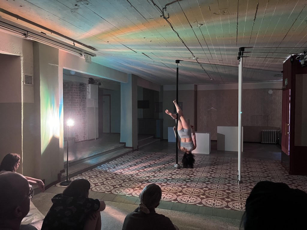 Lovely is a performance series situated at the intersection of pole dance and meditation practice. In the work, meditative sensitization, pleasure, and experiences of connection are made visible through pole dancing and movement. The project consists of six gently participatory events. Lovely explores ways of blending workshop and performance formats, and of weaving meditation into both the act of performing and the act of watching.